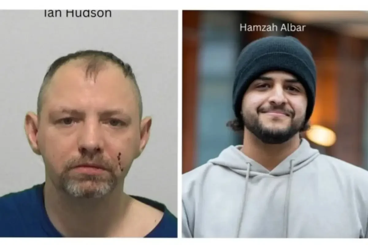 വലത്ത് യുവതിയെ രക്ഷിച്ച സൗദി വിദ്യാർഥി ഹംസ അല്‍ബാര്‍, ഇടത്ത് പ്രതി ഇയാന്‍ ഹഡ്സണ്‍