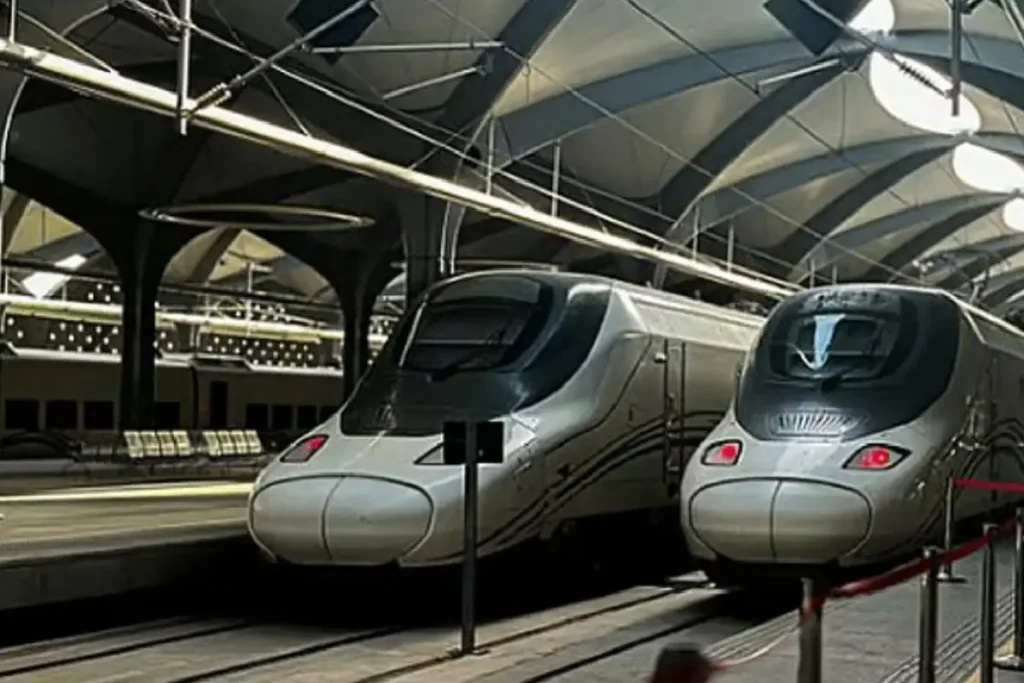 രണ്ട് പുണ്യനഗരങ്ങള്ക്കിടയിലുള്ള ഏറ്റവും വേഗതയേറിയ ഗതാഗത മാര്ഗമാണ് ഹറമൈന് ഹൈ-സ്പീഡ് റെയില്വേ. ഈ പാതയില് മണിക്കൂറില് 300 കിലോമീറ്റര് വേഗതയില് ട്രെയിനുകള് സഞ്ചരിക്കുന്നു. ജിദ്ദ സുലൈമാനിയ, ജിദ്ദ കിംഗ് അബ്ദുല് അസീസ് അന്താരാഷ്ട്ര വിമാനത്താവളം, റാബിഗ് കിംഗ് അബ്ദുല്ല ഇക്കണോമിക് സിറ്റി എന്നീ മൂന്ന് ഇന്റര്മീഡിയറ്റ് സ്റ്റേഷനുകളിലൂടെ കടന്നുപോകുന്ന ട്രെയിനുകള് മക്കക്കും മദീനക്കും ഇടയിലുള്ള യാത്രക്ക് ഏകദേശം രണ്ട് മണിക്കൂര് മാത്രമാണ് എടുക്കുന്നത്. നിലവില് 35 ട്രെയിനുകളാണ് ഈ പാതയില് സര്വീസിന് ഉപയോഗിക്കുന്നത്. ഇത് തീര്ഥാടകരുടെയും സന്ദര്ശകരുടെയും ചലനം സുഗമമാക്കുകയും തിരക്കേറിയ സീസണുകളില് ഗതാഗത കാര്യക്ഷമത മെച്ചപ്പെടുത്തുകയും ചെയ്യുന്നു.