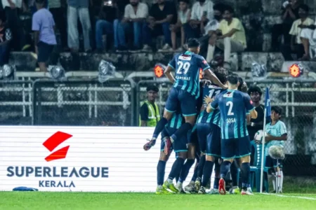 സൂപ്പർ ലീഗ് കേരള സീസൺ 2-ന്റെ ഉദ്ഘാടന മത്സരത്തിൽ നിലവിലെ ചാമ്പ്യന്മാരായ കാലിക്കറ്റ് എഫ്‌സി ഫോഴ്‌സ കൊച്ചിയെ 2-1ന് പരാജയപ്പെടുത്തി