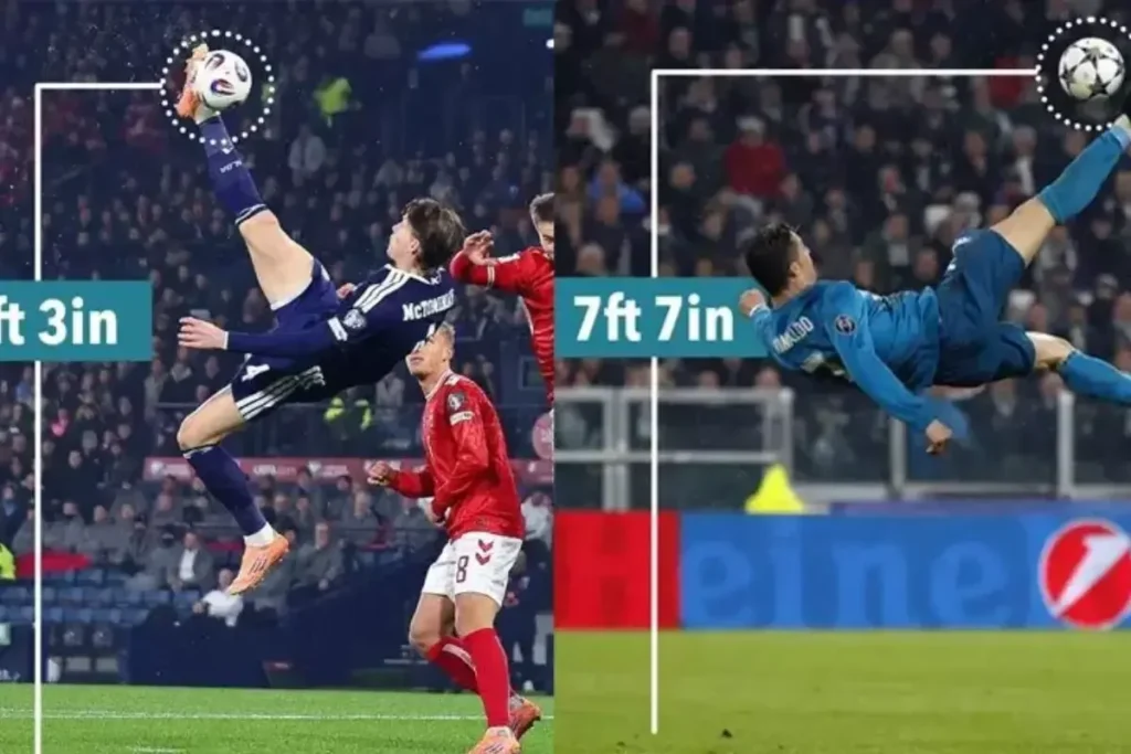 . പിന്നീട് തുർക്കി ലീഗിൽ ബസാക്ഷെഹിർ താരം പോൾ ഒനുവാച്ചു 2.41 മീറ്ററിലേക്ക് റെക്കോർഡ് ഉയർത്തിയിരുന്നു. മക്ടോമിനെ അതും മറികടന്നു – റൊണാൾഡോയേക്കാൾ 14 സെന്റീമീറ്റർ ഉയരത്തിൽ!