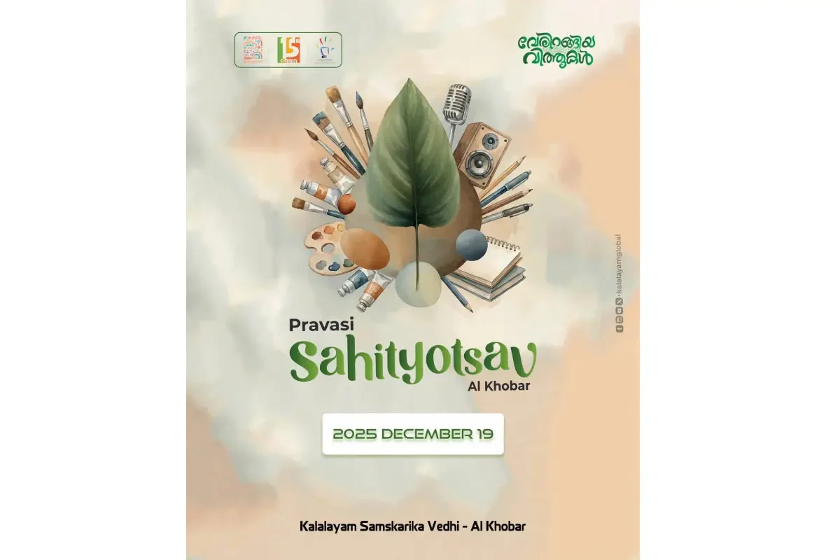 ജിദ്ദ– അൽ ഖോബാർ കലാലയം സാംസ്കാരിക വേദി സംഘടിപ്പിക്കുന്ന 15ാമത് എഡിഷൻ അൽഖോബാർ സോൺ സാഹിത്യോത്സവ് 2025 ഡിസംബർ 19 വെള്ളി അസീസിയയിൽ വെച്ച് നടക്കും.