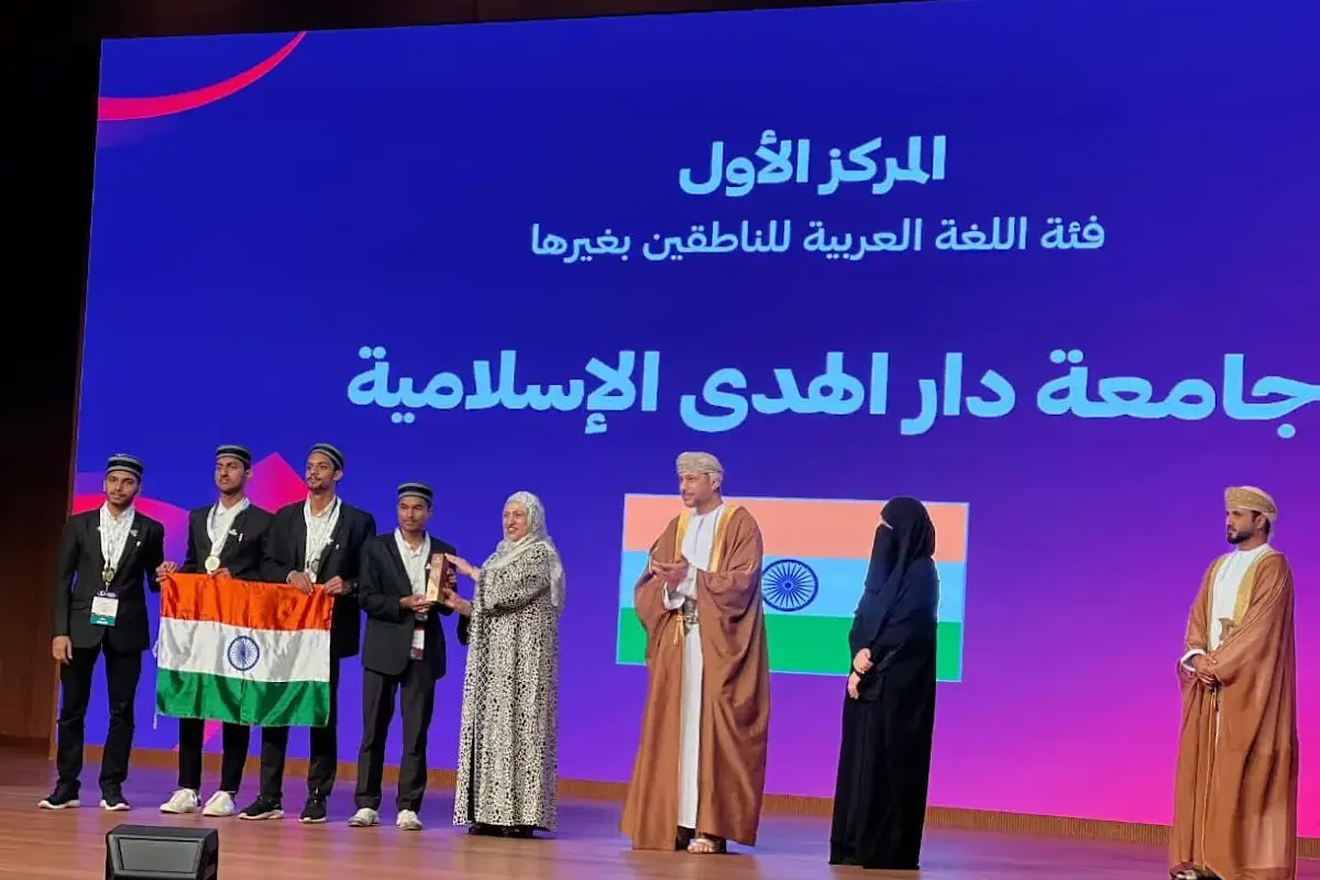മസ്കത്ത്– ഖത്തർ ഡിബേറ്റിന് കീഴിൽ ഒമാനിൽ നടന്ന മൂന്നാമത് ഏഷ്യൻ അറബിക് ഡിബേറ്റ് ചാംപ്യൻഷിപ്പിൽ ഇന്ത്യയെ പ്രതിനിധീകരിച്ച് പങ്കെടുത്ത ദാറുൽഹുദാ ഇസ്‌ലാമിക് സർവകലാശാല ടീം ജേതാക്കളായി. ഇന്തോനേഷ്യയിലെ ചെണ്ടേക്യ മുസ്ലിം യൂണിവേഴ്സിറ്റിയെ മറികടന്നാണ് ചരിത്രനേട്ടം. പാകിസ്താനിലെ ബിനൊരിയ യൂണിവേഴ്സിറ്റിയായിരുന്നു സെമി ഫൈനലിൽ എതിരാളികൾ. ലെബനാൻ ആർട്സ് ആൻഡ് സയൻസ് യൂണിവേഴ്‌സിറ്റി, ഖത്തറിലെ ലുസൈൽ യൂണിവേഴ്സിറ്റി, തായ്‌ലൻഡ്, ഒമാൻ, മലേഷ്യ തുടങ്ങിയ ടീമുകളെ മറികടന്നായിരുന്നു നൺ അറബ് കാറ്റഗറിയിൽ സെമി ഫൈനലിൽ പ്രവേശിച്ചത്. ടീമംഗങ്ങളായ ഫഹ്മീദ് ഖാനും മുഹമ്മദ് ശകീബും ബെസ്റ്റ് ഡിബേറ്റേഴ്സായി തിരഞ്ഞെടുക്കപ്പെടുകയും ചെയ്തു.