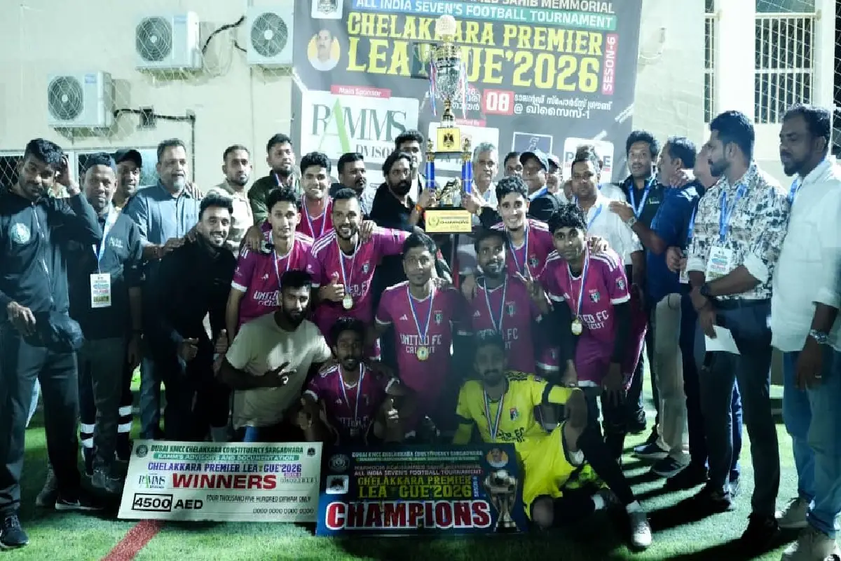 ദുബൈ– കെഎംസിസി ചേലക്കര മണ്ഡലം കമ്മിറ്റി സംഘടിപ്പിച്ച എ സി അഹ്മദ് മെമ്മോറിയൽ ചേലക്കര പ്രീമിയർ ലീഗ് സീസൺ 6 ടൂർണമെന്റ് ഖിസൈസ് ടാലൻ്റഡ് സ്പാർട്സ് ഗ്രൗണ്ടിൽ ആവേശകരമായി നടന്നു. യുണൈറ്റഡ് എഫ് സി കാലിക്കറ്റ് ചാമ്പ്യന്മാരായി. ജി ടി ഇസഡ് ഷിപ്പിംഗ് എഫ് സി, ഫസ്റ്റ് റണ്ണർഅപ്പും, ബിൻ മൂസ ഗ്രൂപ്പ് ദേര എഫ് സി സെക്കന്റ് റണ്ണർഅപ്പുമായി, ഡി ഡി പി ഫ്രെയ്ട് ഹസ്റ്റലേർസ് എഫ് സി ആണ് തേർഡ് റണ്ണർ അപ്പ്. ബെസ്റ്റ് പ്ലേയർ റഹിം ദാസ് (യുണൈറ്റഡ്) ബെസ്റ്റ് ഗോൾ കീപ്പർ സുഹൈൽ, ബെസ്റ്റ് ഡിഫൻഡർ ആത്തിഫ് (ഇരുവരും ജി ടി ഇസഡ്), ടോപ് സ്‌കോറർ മുഷ്താഖ് (ബിൻ മൂസ) എന്നിവരാണ്