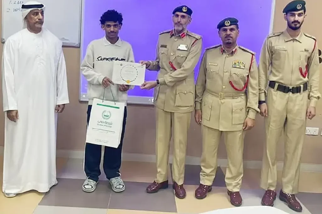 രണ്ടു ലക്ഷത്തിലധികം ദിര്‍ഹം അടങ്ങിയ പഴ്‌സ് തിരികെ നല്‍കിയ വിദ്യാര്‍ഥിയെ ആദരിച്ച് ദുബൈ പോലീസ്