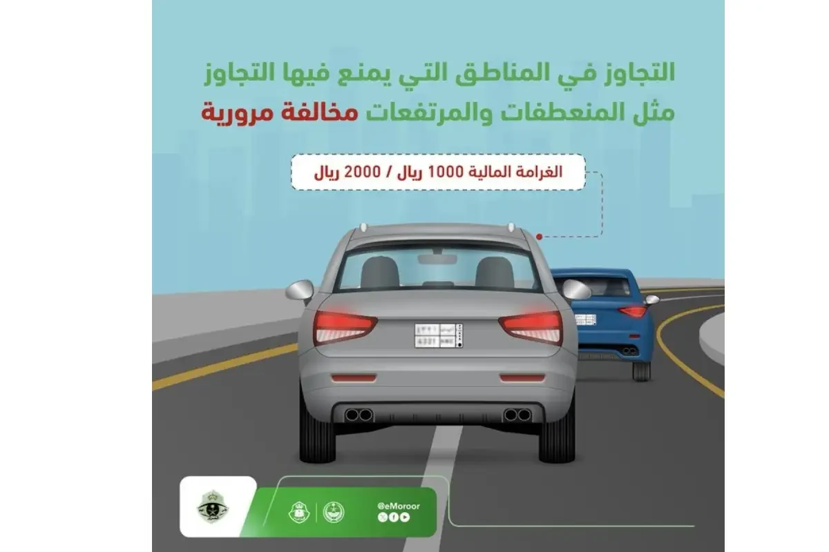 ഇത്തരം നിരോധിത പ്രദേശങ്ങളില്‍ ഓവര്‍ടേക്ക് ചെയ്യുന്നതിന് 1,000 റിയാല്‍ മുതല്‍ 2,000 റിയാല്‍ വരെ പിഴ ഈടാക്കുമെന്ന് ട്രാഫിക് ഡയറക്ടറേറ്റ് എക്‌സ് പ്ലാറ്റ്ഫോമിലെ ഔദ്യോഗിക അക്കൗണ്ട് വഴി അറിയിച്ചു.