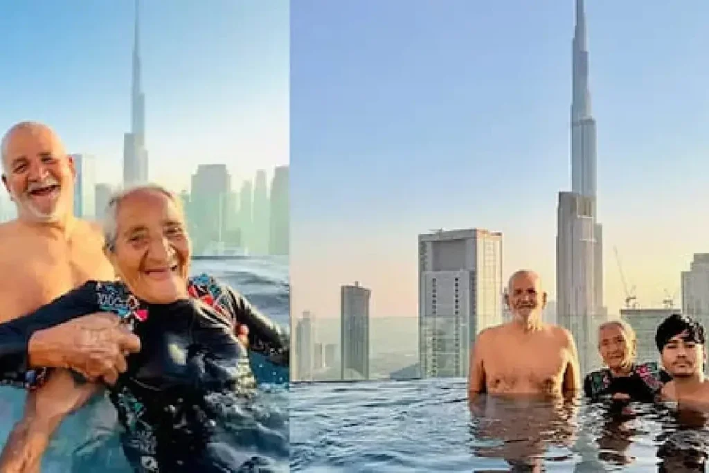 ദുബൈ– ഹൃദയം തൊടുന്നൊരു സുന്ദരമായ വീഡിയോയാണ് ഇപ്പോള്‍ സോഷ്യൽ മീഡിയയുടെ മനം കവരുന്നത്. ഒരു ഇന്ത്യൻ യുവാവ് പങ്കുവെച്ച വീഡിയോയാണ് വൈറലാകുകയാണ്. യൂട്യൂബറായ അങ്കിത് പങ്കുവെച്ച വീഡിയോയിൽ, ദുബൈയിലെ കെട്ടിടസമുച്ചയങ്ങൾക്ക് മുകളിലെ ഇൻഫിനിറ്റി സ്വിമ്മിങ് പൂളിൽ തന്‍റെ മുത്തച്ഛനും മുത്തശ്ശിക്കുമൊപ്പം സമയം ചെലവഴിക്കുന്നത് കാണാം. ദുബൈയിലെ മനോഹരമായ ആകാശക്കാഴ്ചകൾ പൂളിൽ നിന്ന് ആസ്വദിക്കുന്ന അവർക്കരികിലെത്തി അങ്കിത് വിശേഷങ്ങൾ ചോദിക്കുന്നുമുണ്ട്.