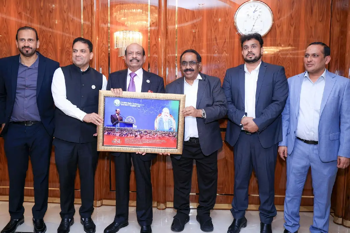 പദ്മശ്രീ എം.എ. യൂസഫലിക്ക് ദുബൈ കെ.എം.സി.സി കാസറഗോഡ് ജില്ലാ കമ്മിറ്റിയുടെ സ്നേഹോപഹാരം യഹ്യ തളങ്കരയും നിസാർ തളങ്കരയും ചേർന്ന് സമ്മാനിക്കുന്നു
