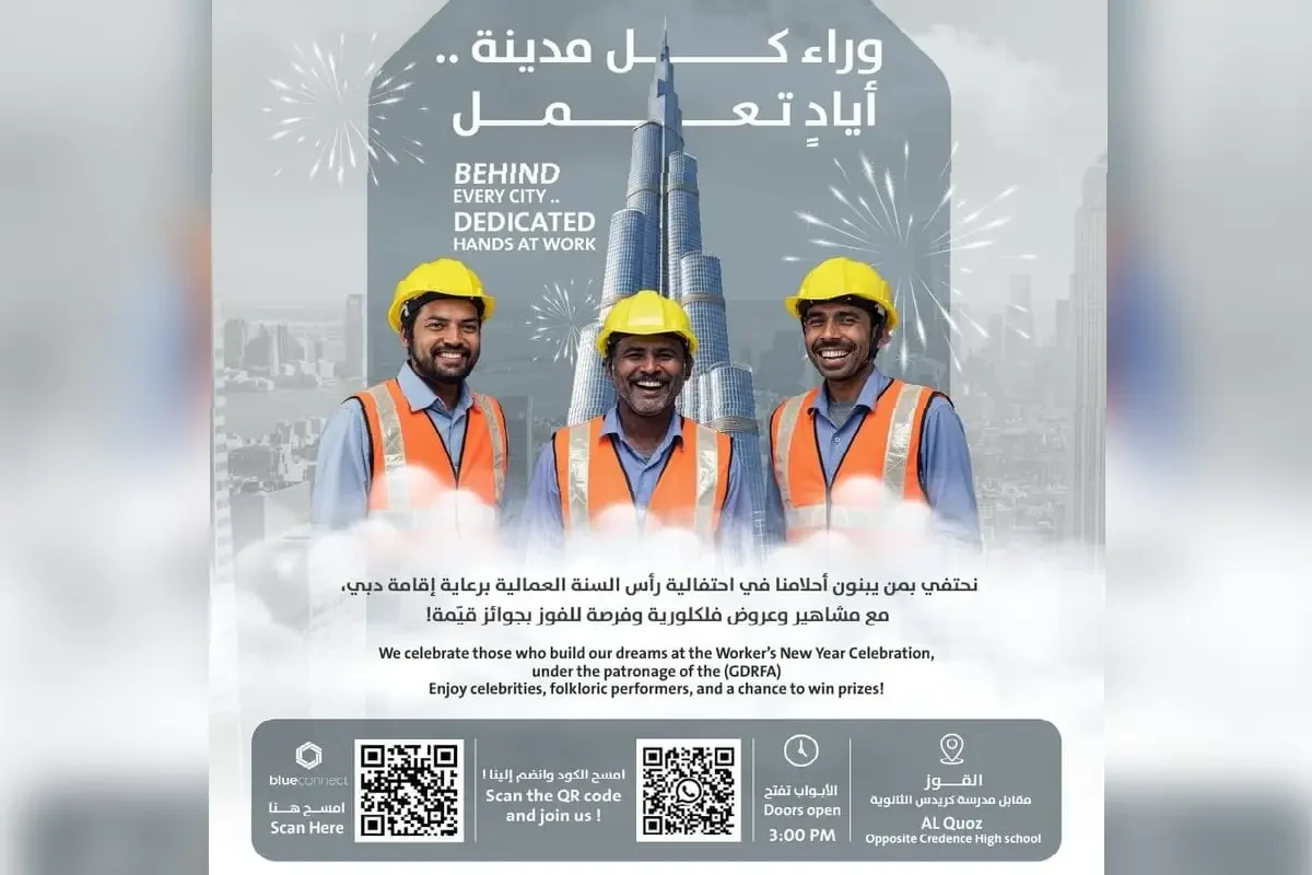 നേരിട്ടോ ‘ബ്ലൂ കണക്ട്’ വഴി വിർച്വലായോ ഈ അപൂർവ്വ പുതുവത്സരാഘോഷത്തിൽ പങ്ക് ചേരാൻ ദുബൈയിലെ മുഴുവൻ തൊഴിലാളികളേയും ജി.ഡി.ആർ എഫ് എ ദുബൈ ക്ഷണിച്ചു. “മനുഷ്യരാണ് വികസനത്തിൻ്റെ ഹൃദയം” എന്ന ദുബൈയിയുടെ ദർശനം ശക്തമായി ഉയർത്തിപ്പിടിക്കുന്ന ഈ ആഘോഷം, പുതുവർഷത്തെ സന്തോഷത്തോടെയും ഐക്യത്തോടെയും വരവേൽക്കുന്ന ഒരു കൂട്ടായ അനുഭവമാകുമെന്ന് അധികൃതർ വ്യക്തമാക്കി.
