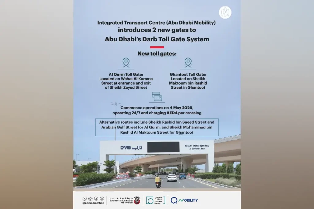 അബുദാബി– ദുബൈക്കും അബുദാബിക്കും ഇടയിലുള്ള E11 ഹൈവേയിൽ പുതിയ ദർബ് ടോൾ ഗേറ്റുകൾ അടുത്തമാസം 4ന് പ്രവര്ത്തനമാരംഭിക്കുമെന്ന് മുനിസിപ്പാലിറ്റികളുടെയും ഗതാഗത വകുപ്പിന്റെയും അഫിലിയേറ്റായ ഇന്റഗ്രേറ്റഡ് ട്രാന്സ്പോര്ട്ട് സെന്റര് (ഐടിസി) അറിയിച്ചു. ദുബൈ-അബുദാബി റോഡായ ശൈഖ് മക്തൂം ബിന് റാഷിദ് സ്ട്രീറ്റില് ഖന്തൂത്തിലും അബുദാബിയില്നിന്നും ശൈഖ് സായിദ് സ്ട്രീറ്റിന്റെ പ്രവേശന കവാടത്തില് വഹാത് അല് കരാമ സ്ട്രീറ്റിലുമാണ് പുതിയ ടോള് ഗേറ്റുകള് സ്ഥാപിച്ചിട്ടുള്ളത്. അബുദാബി നഗരത്തിൽ നിലവിലുള്ള പാലം കേന്ദ്രീകരിച്ചുള്ള ടോൾ പോയിന്റുകളിൽ നിന്ന് വ്യത്യസ്തമായി, പുതിയവ റോഡിൽ നേരിട്ട് സ്ഥാപിച്ചിരിക്കുകയാണ്. ‘ദർബ് ഖൻദൂത്ത് ടോൾ ഗേറ്റ്’, ‘ദർബ് അൽ ഖുറം ടോൾ ഗേറ്റ്’ എന്നിങ്ങനെയാണ് ഇവിടങ്ങളിൽ രേഖപ്പെടുത്തിയിരിക്കുന്നത്.