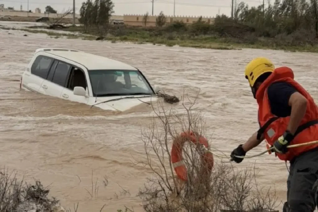 മറ്റൊരു സംഭവത്തില്‍, അല്‍ബാഹയിലെ അല്‍അഖീഖിന് തെക്കുള്ള വാദി തരാദില്‍ ഒഴുക്കില്‍ പെട്ട കാറിന്റെ ഡ്രൈവറെ നാട്ടുകാര്‍ ചേര്‍ന്ന് രക്ഷപ്പെടുത്തി. കാര്‍ ഒഴുക്കില്‍ പെടുന്നതിന്റെയും രക്ഷാപ്രവര്‍ത്തനത്തിന്റെയും വീഡിയോകള്‍ പുറത്തുവന്നിട്ടുണ്ട്. കയര്‍ എറിഞ്ഞുകൊടുത്താണ് സൗദി പൗരന്മാര്‍ ഡ്രൈവറെ രക്ഷപ്പെടുത്തിയത്. കാറില്‍ നിന്ന് കുത്തിയൊലിക്കുന്ന വെള്ളത്തിലേക്ക് ചാടിയ ഡ്രൈവറെ രക്ഷാപ്രവര്‍ത്തകര്‍ വേഗത്തില്‍ കരയിലേക്ക് വലിച്ച് കയറ്റുകയായിരുന്നു.