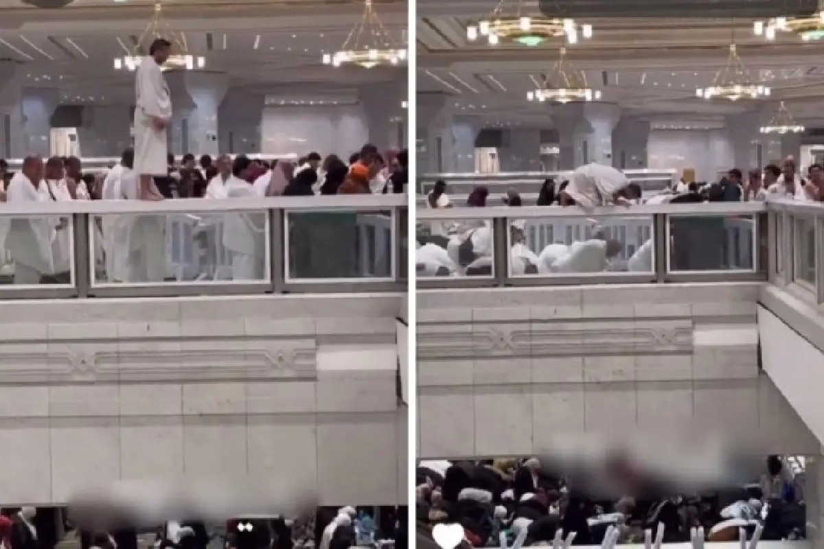 മക്ക -വിശുദ്ധ ഹറമില്‍ ഉംറ തീര്‍ഥാടകന്റെ സാഹസികമായ നമസ്‌കാരം. സ്വന്തം ജീവന്‍ അപകടത്തിലാകും വിധം ഹറമിന്റെ മുകള്‍ നിലയില്‍ ഏതാനും ഇഞ്ചുകള്‍ മാത്രം വീതിയുള്ള ചില്ല് ബാരിക്കേഡിന്റെ മുകളിലെ പാനലില്‍ കയറിനിന്നാണ് തീര്‍ഥാടകന്‍ തറാവീഹ് നമസ്‌കാരം നിര്‍വഹിച്ചത്. ബാലന്‍സ് തെറ്റിയാല്‍ തീര്‍ഥാടകന്‍ താഴേക്ക് വീണ് ജീവന്‍ അപകടത്തിലാകുമായിരുന്നു. ഇതിന്റെ ദൃശ്യങ്ങള്‍ അടങ്ങിയ വീഡിയോ ദൃക്‌സാക്ഷികളില്‍ ഒരാള്‍ ചിത്രീകരിച്ച് സാമൂഹികമാധ്യമങ്ങളിലൂടെ പുറത്തുവിട്ടു.