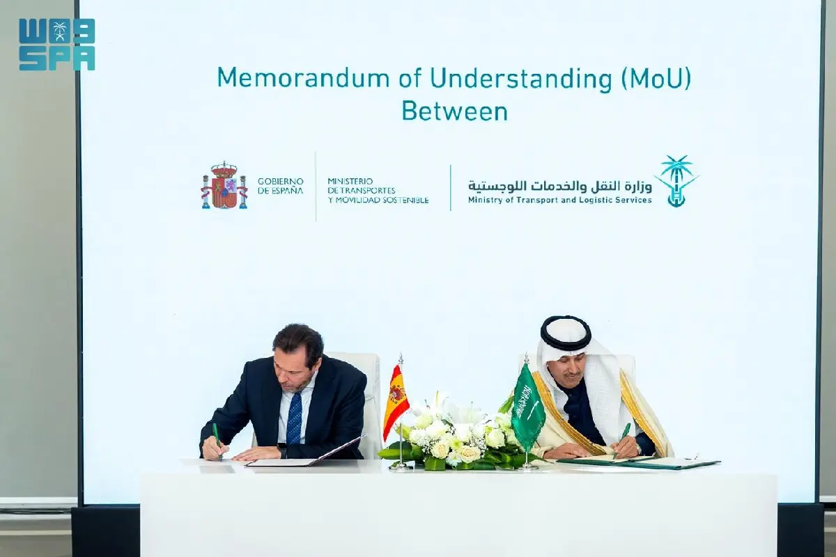 റിയാദില്‍ ഗതാഗത, ലോജിസ്റ്റിക്സ് സര്‍വീസ് മന്ത്രാലയ ആസ്ഥാനത്ത് നടന്ന ചടങ്ങില്‍ സൗദി അറേബ്യയെ പ്രതിനിധീകരിച്ച് ഗതാഗത, ലോജിസ്റ്റിക്സ് സര്‍വീസ് മന്ത്രി എന്‍ജിനീയര്‍ സ്വാലിഹ് അല്‍ജാസിറും സ്പെയിനിനെ പ്രതിനിധീകരിച്ച് സ്പാനിഷ് ഗതാഗത, സുസ്ഥിര മൊബിലിറ്റി മന്ത്രി ഓസ്‌കാര്‍ പ്യൂന്റെയും ധാരണാപത്രങ്ങളില്‍ ഒപ്പുവെച്ചു.
