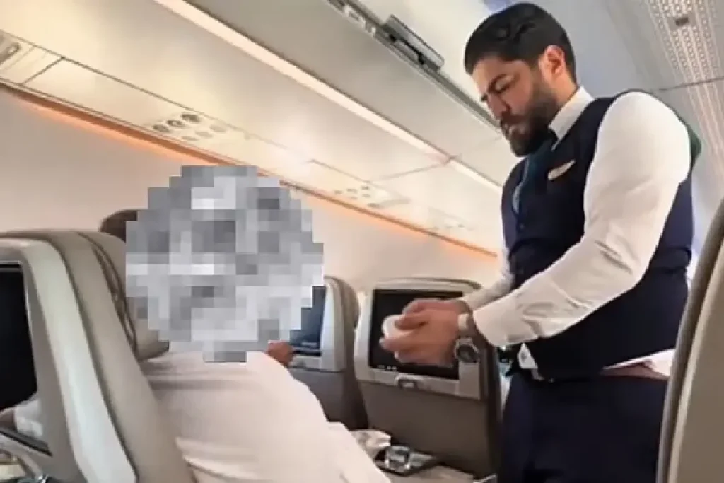 സൗദിയ വിമാനത്തില്‍ വൃദ്ധ തീര്‍ഥാടകന് നൽകുന്ന പരിചരണം ഹൃദയങ്ങള്‍ കീഴടക്കുന്നു