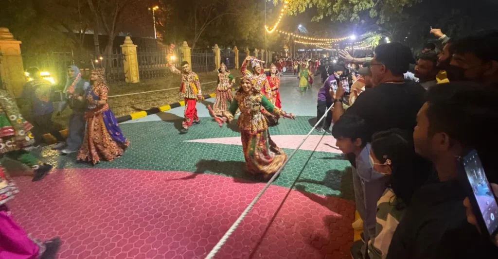 വൈകുന്നേരം ആറു മണിക്കും രാത്രി ഒമ്പത് മണിക്കും ബന്‍ഗ്ര, ഗര്‍ഭ, ഗരുഡന്‍ ആക്ട്, ചെണ്ടമേളം, ഓണം ഡാന്‍സ്, പീകോക്ക് ഡാന്‍സ്, മിറര്‍, ഇന്ത്യന്‍ ലോംഗ് മെന്‍, നാസിക് ബാന്റ്്, തെയ്യും, തിറ, കാവടിയാട്ടം കലാകാരന്മാര്‍ പാര്‍ക്കിനെ വലയം വെക്കും.