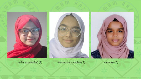 സൗദി ദേശീയദിന ക്വിസ് മത്സരം: ഫിദ ഫാത്തിന് ഒന്നാം സ്ഥാനംBy ദ മലയാളം ന്യൂസ്25/09/2025 സൗദി ദേശീയ ദിനാഘോഷങ്ങളുടെ ഭാഗമായി ജിദ്ദയിലെ ഇമാം റാസി മദ്രസ മുഷ്റിഫ സംഘടിപ്പിച്ച ഓൺലൈൻ ക്വിസ് മത്സരത്തിലെ വിജയികളെ പ്രഖ്യാപിച്ചു. Read More