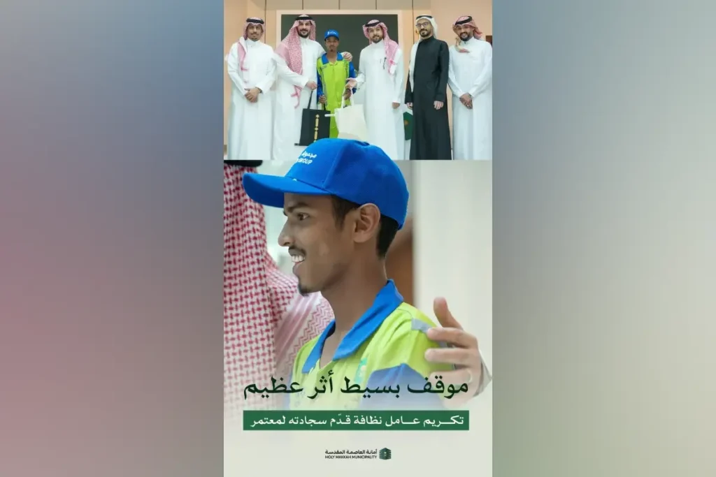 മക്ക– വിശുദ്ധ ഹറമില്‍ നമസ്‌കാരം നിര്‍വഹിക്കാന്‍ സ്വന്തം മുസല്ല (നമസ്‌കാരപടം) തീര്‍ഥാടകന് സമ്മാനിച്ച ശുചീകരണ തൊഴിലാളിയെ മക്ക നഗരസഭ ആദരിച്ചു. കുറഞ്ഞ വേതനത്തിന് ജോലി ചെയ്യുന്ന ശുചീകരണ തൊഴിലാളി നിസ്വാര്‍ഥതയുടെയും കാരുണ്യത്തിന്റെയും മൂല്യങ്ങളെ പ്രതിഫലിപ്പിക്കുന്ന സ്വാഭാവിക പ്രവൃത്തിയെന്നോണം തന്റെ മുസല്ല തീര്‍ഥാടകരില്‍ ഒരാള്‍ക്ക് സമ്മാനിക്കുകയായിരുന്നു. ഇതിന്റെ ദൃശ്യങ്ങള്‍ അടങ്ങിയ വീഡിയോ മറ്റൊരു തീര്‍ഥാടകന്‍ ചിത്രീകരിച്ച് സാമൂഹികമാധ്യമത്തിലൂടെ പുറത്തുവിട്ടു. വീഡിയോ വൈകാതെ വൈറലായി. ഇതോടെ സാമൂഹികമാധ്യമ ഉപയോക്താക്കളുടെ വ്യാപക പ്രശംസ നേടുകയായിരുന്നു.