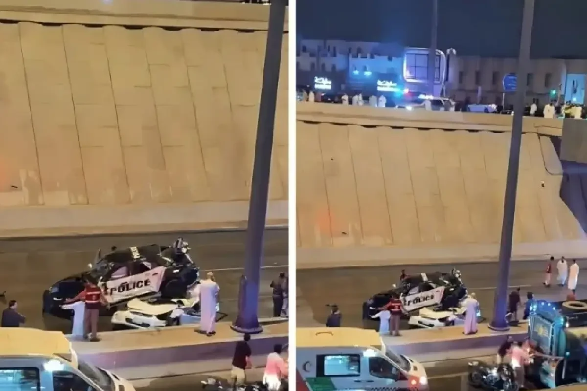 റിയാദ്– തലസ്ഥാന നഗരിയിലെ പാലത്തിൽ നിന്ന് പോലീസ് വാഹനം താഴേക്ക് മറിഞ്ഞു. താഴെയുള്ള റോഡിലൂടെ സഞ്ചരിക്കുകയായിരുന്ന കാറിനു മുകളിലേക്കാണ് പോലീസ് കാർ മറിഞ്ഞത്. അപകടത്തിൽ രണ്ടാമത്തെ കാർ ഏറെക്കുറെ പൂർണമായും തകർന്നു. പോലീസ് കാറിനും കേടുപാടുകൾ സംഭവിച്ചിട്ടുണ്ട്. സംഭവത്തിൽ നിയമാനുസൃത നടപടികൾ സ്വീകരിച്ചതായി റിയാദ് ട്രാഫിക് പോലീസ് അറിയിച്ചു. അപകടത്തിൽ ആളപായമോ ആർക്കെങ്കിലും പരുക്ക് പറ്റിയതായോ ട്രാഫിക് പോലീസ് വെളിപ്പെടുത്തിയില്ല.