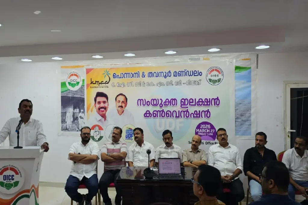 ഒഐസിസി, കെഎംസിസി നേതാക്കളായ അമീര് പട്ടണത്ത്, അബ്ദുല് അസീസ്, വഹീദ് വാഴേക്കാട്, സഫീര്, ബഷീര് കോട്ടക്കല്, അസ്ലം കളക്കര, റസാഖ് പൊന്നാനി, ബിലാല്, ജാഫര് പുറങ്ങ്, ബക്കര് കിളിയില് എന്നിവര് ആശംസകള് നേര്ന്ന് സംസാരിച്ചു. നിസാര്, അലി, ഷഫീക്, നൗഷാദ്, അല്ത്താഫ്, അബ്ദു, ഫാറൂഖ് എന്നിവര് പരിപാടിക്ക് നേതൃത്വം നല്കി. തെരഞ്ഞെടുപ്പ് പ്രവര്ത്തനങ്ങള് കൂടുതല് ശക്തിപ്പെടുത്താനും പ്രവാസി സമൂഹത്തിന്റെ ഏകോപിത ഇടപെടല് ഉറപ്പാക്കാനും ഓരോ മണ്ഡലത്തിലും യുഡിഎഫ് സ്ഥാനാര്ഥികളുടെ വിജയത്തിനായി സജീവമായി പ്രവര്ത്തിക്കണമെന്ന ആഹ്വാനത്തോടെ കണ്വെന്ഷന് സമാപിച്ചു.