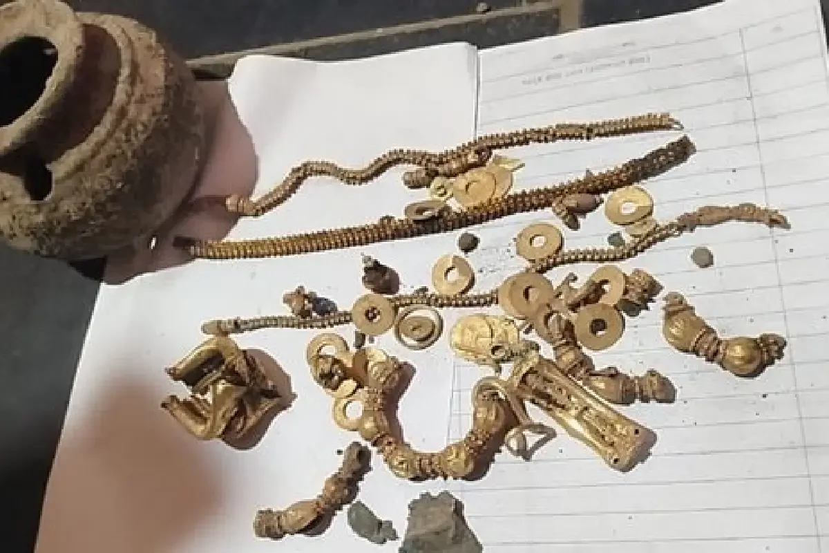 കഴിഞ്ഞ ആഴ്ച ഒരു വീടിന്റെ തറ കിളയ്ക്കുന്നതിനിടെ പ്രജ്വൽ എന്ന എട്ടാം ക്ലാസ്സുകാരനാണ് ചെമ്പുപാത്രത്തിൽ സൂക്ഷിച്ച നിലയിൽ സ്വർണ്ണാഭരണങ്ങൾ കണ്ടെത്തിയത്. ഏകദേശം 470 ഗ്രാം തൂക്കം വരുന്ന ആഭരണങ്ങൾക്ക് 300 മുതൽ 400 വർഷം വരെ പഴക്കമുണ്ടെന്നാണ് പ്രാഥമിക നിഗമനം. സത്യസന്ധതയോടെ നിധി അധികൃതർക്ക് കൈമാറിയ ബാലനെ ജില്ലാ ഭരണകൂടം ആദരിച്ചിരുന്നു. ഇതിന് പിന്നാലെയാണ് പ്രദേശത്ത് കൂടുതൽ നിധി ഒളിഞ്ഞിരിപ്പുണ്ടെന്ന നിഗമനത്തിൽ സർക്കാർ ഖനനത്തിന് ഉത്തരവിട്ടത്.