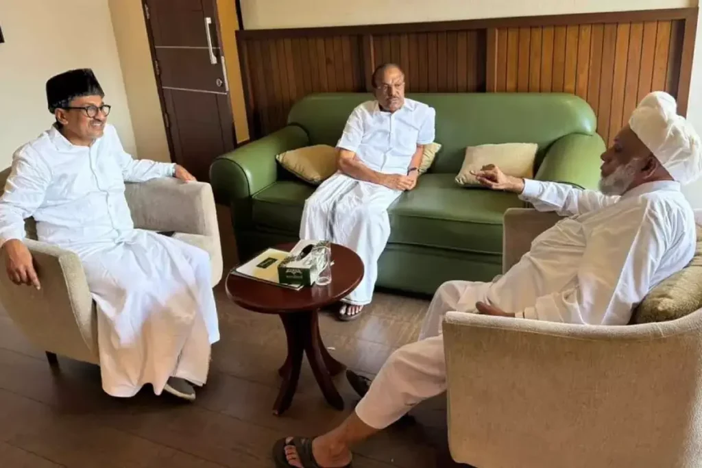 ജിഫ്രി തങ്ങൾ, സാദിഖലി തങ്ങൾ, പി.കെ. കുഞ്ഞാലിക്കുട്ടി എന്നിവർ ചർച്ചക്കിടെ