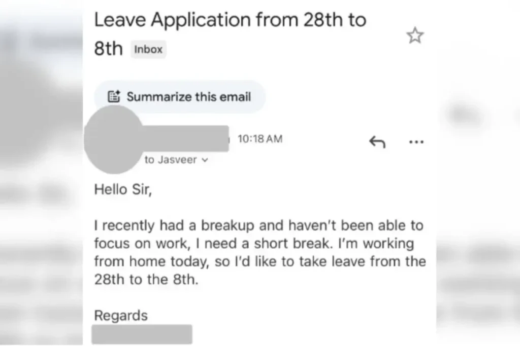 ബ്രേക്ക് അപ്പിന് ലീവ്; വൈറലായി ജീവനക്കാരൻ്റെ മെയിൽ