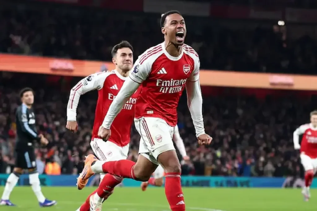 48-ാം മിനുറ്റിൽ ആർസണലിന്റെ പ്രധാന ആയുധമായ കോർണറിലാണ് ആദ്യം പിറന്നത്. ബുക്കായി സാക എടുത്ത കോർണറിൽ തല വെച്ച് ഗബ്രിയേൽ ടീമിനെ മുന്നിലെത്തിച്ചു. നാലു മിനുറ്റുകൾക്ക് ശേഷം സുബിമെൻഡിയും വല കുലുക്കി. ക്യാപ്റ്റൻ മാർട്ടിൻ ഒഡെഗാർഡ് നൽകിയ മികച്ച ഒരു ത്രൂ പാസിലൂടെയാണ് താരത്തിന്റെ ഗോൾ വന്നത്. 69-ാം മിനുറ്റിൽ ട്രോഷർഡ് ബോക്സിന്റെ പുറത്ത് നിന്ന എടുത്ത ഷോട്ടും ഗോൾ ആയതോടെ പീരങ്കികൾ മൂന്നു ഗോളുകൾക്ക് മുന്നിലെത്തി. 78-ാം മിനുറ്റിൽ പകരക്കാരനായി ഇറങ്ങിയ തൊട്ടടുത്ത നിമിഷം ജീസസും ലക്ഷ്യം കണ്ടതോടെ സ്കോർ 4-0. ഇഞ്ചുറി ടൈമിന്റെ നാലാം മിനുറ്റിൽ വാട്ട്കിൻസ് ഗോൾ നേടി ടീമിന്റെ തോൽവിഭാരം കുറച്ചു. ജയത്തോടെ 19 മത്സരങ്ങളിൽ 45 പോയിന്റുമായി ആർസണൽ ഒന്നാം സ്ഥാനത്ത് തുടരുകയാണ്. ഒരു മത്സരം കുറവ് കളിച്ച മാഞ്ചസ്റ്റർ സിറ്റി 40 പോയിന്റുമായി രണ്ടാമതും 39 പോയിന്റ് ഉള്ള വില്ല മൂന്നാമതും ആണ്.
