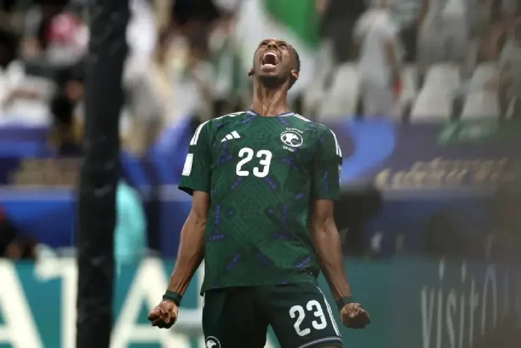 മത്സരത്തിന്റെ ആദ്യപകുതിയിൽ സൗദി ആധിപത്യം പുലർത്തിയെങ്കിലും ഫലസ്തീൻ വല കുലുക്കാൻ കഴിഞ്ഞില്ല. തുടർന്ന് 58-ാം മിനുറ്റിൽ ലഭിച്ച പെനാൽറ്റി കൃത്യമായി വലയിൽ എത്തിച്ച് ഫിറാസ് അൽ-ബുറൈകൻ ടീമിന് ലീഡ് നൽകി. പിന്നീട് ഉണർന്നു കളിച്ച ഫലസ്തീൻ വെറും ആറ് മിനിറ്റുകൾക്ക് ഉള്ളിൽ തന്നെ തിരിച്ചടിച്ച് ഒപ്പമെത്തി. ഒഡയ് ദബ്ബാഗ് ആണ് ഫലസ്തീന് വേണ്ടി വല കുലുക്കിയത്. പിന്നീടും ഇരു ടീമുകൾക്കും ഒന്ന് രണ്ട് അവസരങ്ങൾ സൃഷ്ടിക്കാൻ കഴിഞ്ഞെങ്കിലും കാര്യമുണ്ടായില്ല. ഇതിനിടയിൽ സൗദി അറേബ്യ ഒരു തവണ വല കുലുക്കിയെങ്കിലും ഓഫ് സൈഡിൽ കുരുങ്ങി. ഇഞ്ചുറി ടൈമിൽ അവസാന സമയം ഹാൻഡ് ബോളിനെ തുടർന്ന് റഫറി സൗദിക്ക് ആദ്യം പെനാൽറ്റി വിധിച്ചില്ലെങ്കിലും വാർ പരിശോധനയിലൂടെ തള്ളിക്കളഞ്ഞിരുന്നു.