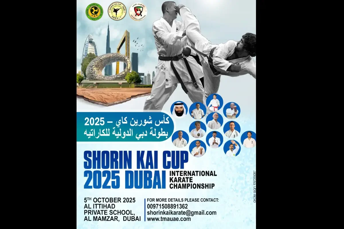 ദുബൈ– ട്രഡീഷണൽ മാർഷ്യൽ ആർട്സ് ക്ലബ് സംഘടിപ്പിക്കുന്ന അന്താരാഷ്ട്ര കരാട്ടെ ചാമ്പ്യൻഷിപ്പായ ഷോറിൻ കായ് കപ്പ് 2025 ഒക്ടോബർ 4, 5 തീയതികളിൽ ദുബൈ മാംസാറിലുള്ള അൽ ഇത്തിഹാദ് പ്രൈവറ്റ് സ്കൂൾ ഓഡിറ്റോറിയത്തിൽ വച്ച് നടത്തപ്പെടുമെന്ന് ഷോറിൻ കായ് കപ്പ് ഭാരവാഹികൾ പത്രക്കുറിപ്പിൽ അറിയിച്ചു.