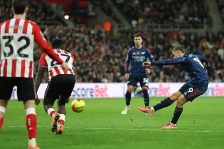 പ്രീമിയർ ലീഗിൽ ഒന്നാമത് തുടരുന്ന ആഴ്സണലിന് സമനില ഷോക്ക്. ഈ വർഷം പ്രീമിയർ ലീഗിലേക്ക് എത്തി മികച്ച പ്രകടനം കാഴ്ചവെക്കുന്ന സണ്ടർലാൻഡാണ് സമനിലയിൽ തളച്ചത് (2-2).