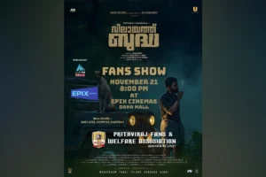 - പൃഥ്വിരാജ് ഫാൻസ് ബഹ്റൈൻ ‘വിലായത്ത് ബുദ്ധ’യുടെ പ്രത്യേക പ്രദര്ശനം സംഘടിപ്പിക്കുന്നു