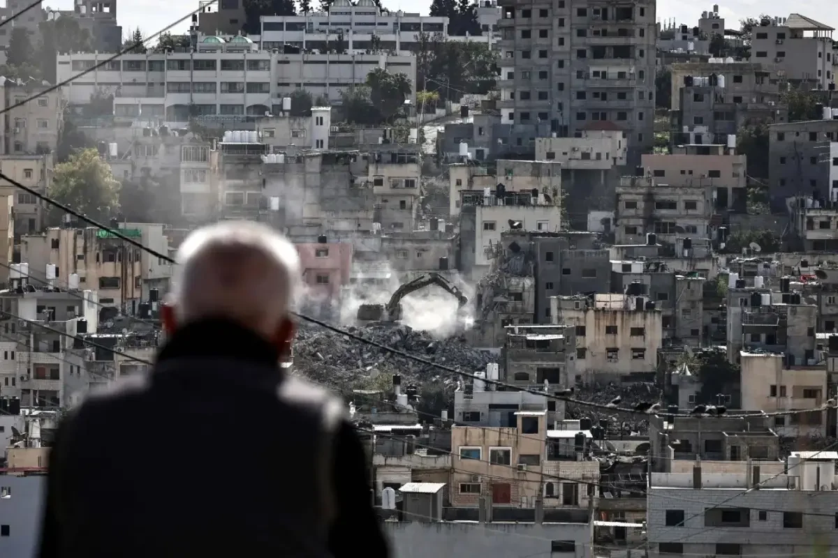വടക്കന്‍ അധിനിവിഷ്ട വെസ്റ്റ് ബാങ്കിലെ തൂല്‍കറമിന് കിഴക്കുള്ള നൂര്‍ശംസ് അഭയാര്‍ഥി ക്യാമ്പില്‍ പുതുവത്സര ദിനത്തില്‍ ഇസ്രായിലി സൈനിക ബുള്‍ഡോസര്‍ ഉപയോഗിച്ച് തങ്ങളുടെ വീടുകള്‍ തകര്‍ക്കുന്നത് ക്യാമ്പിലെ താമസക്കാര്‍ വീക്ഷിക്കുന്നു