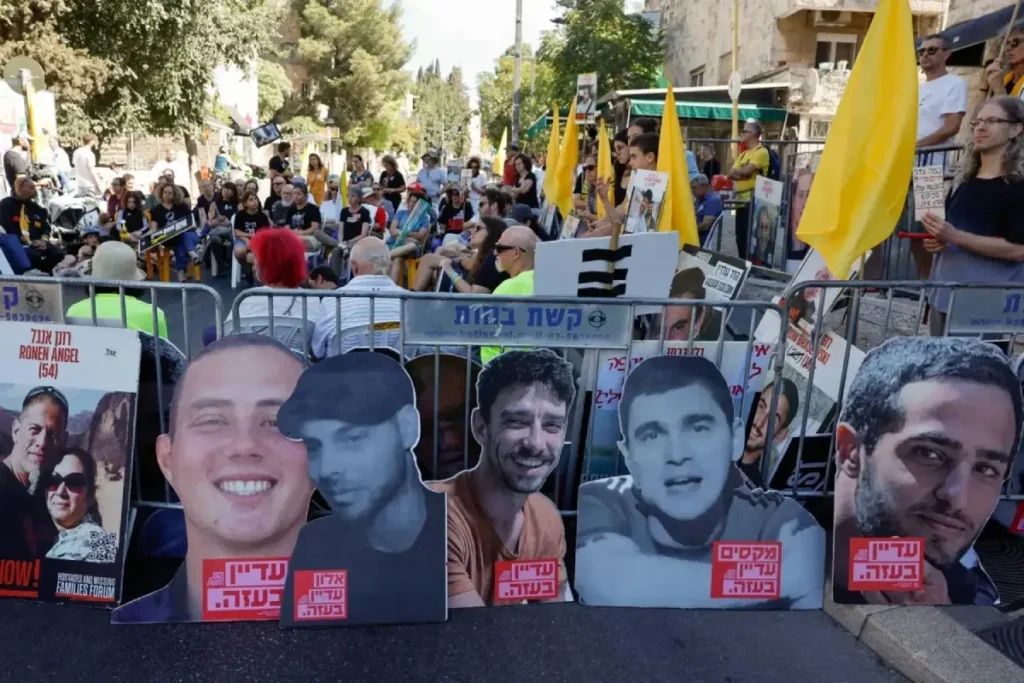 ഹമാസിന്റെ പക്കലുള്ള ഇസ്രായിലി ബന്ദികളുടെ ഫോട്ടോകളുമായി ഇസ്രായിലില്‍ പ്രകടനം നടത്തുന്ന ആക്ടിവിസ്റ്റുകള്‍