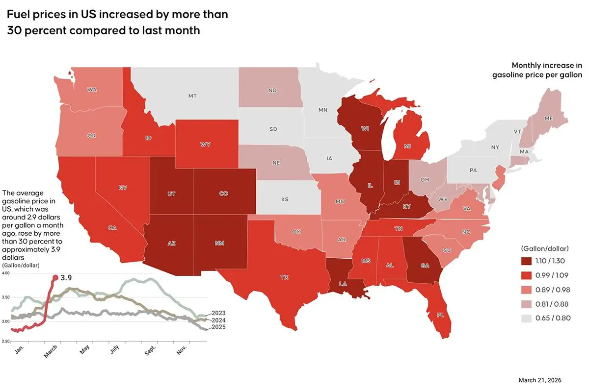 വാഷിങ്ടൺ– ഇറാനുമായി യുദ്ധം ആരംഭിച്ച ശേഷം അമേരിക്കയിൽ ഇന്ധന വില കുത്തനെ കൂടിയതായി റിപ്പോർട്ട്. ഇസ്രായിലും അമേരിക്കയും സംയുക്തമായി ഇറാനെ ആക്രമിക്കുന്നത് തുടർന്ന് നാലാഴ്ച പിന്നിടുമ്പോൾ യുഎസിൽ ഇന്ധന വിലയിൽ 30 ശതമാനത്തോളം വർദ്ധനവാണ് രേഖപ്പെടുത്തിയിട്ടുള്ളത്. ഹോർമുസ് കടലിടുക്കിൽ ശത്രുക്കൾക്കും സഖ്യകക്ഷികൾക്കും ഇറാൻ ഏർപ്പെടുത്തിയ വിലക്ക് കാരണം ക്രൂഡോയിൽ ലഭ്യത കുറഞ്ഞതാണ് പ്രതിസന്ധിയിലാക്കിയത്.